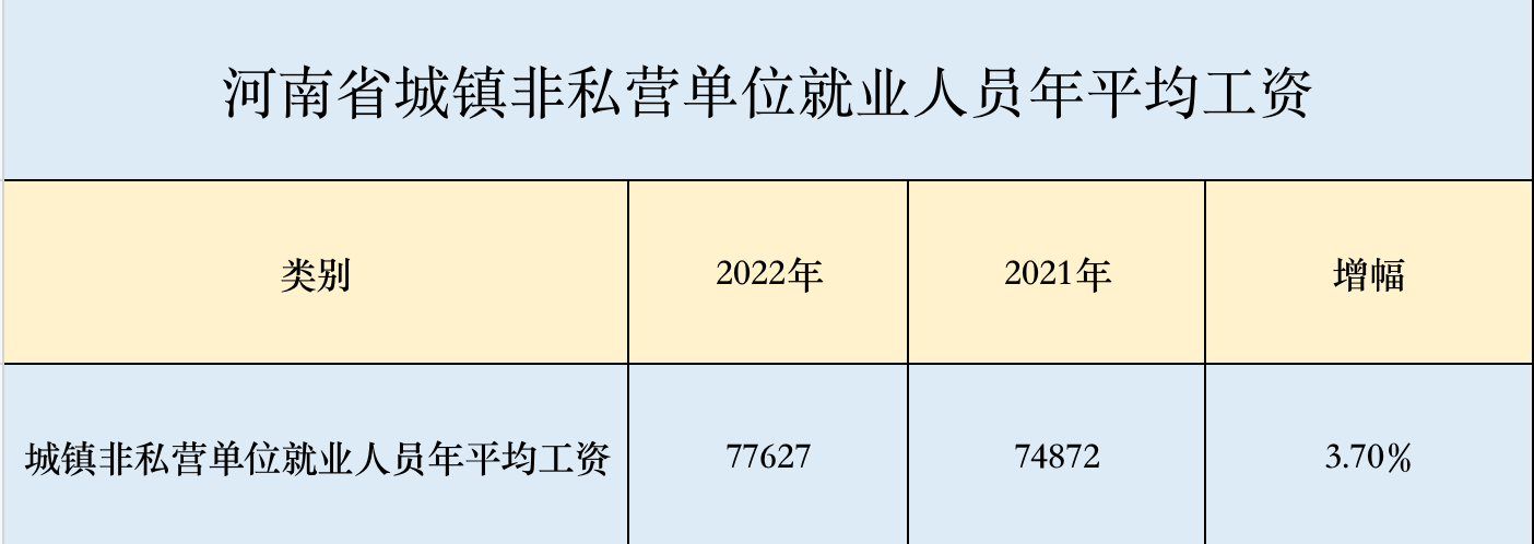 2023年6月,河南省统计局最新公布了2022年河南省不同口径的社会平均工资,