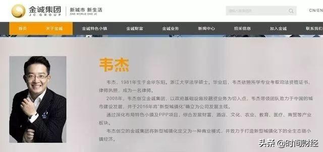 38岁的韦杰是金诚集团实控人,被外界一度被誉为新型城镇化第一人、特色小镇引领者、中国企业思想家。还获得“2015中国经济年度人物”、“2016中国财经年度人物”等称号。