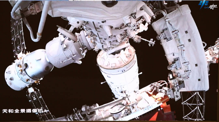 这是我国首次利用转位机构在轨实施大体量舱段转位操作。问天实验舱转位完成后,空间站组合体由两舱“一”字构型转变为两舱“L”构型。后续,空间站组合体将以“L”字构型在轨飞行,等待梦天实验舱发射、交会对接后,还将转位形成空间站三舱“T”字构型组合体。