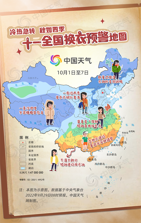 快快查收十一全国换衣预警地图,看谁家短袖换毛衣,谁家羽绒服急需出场。