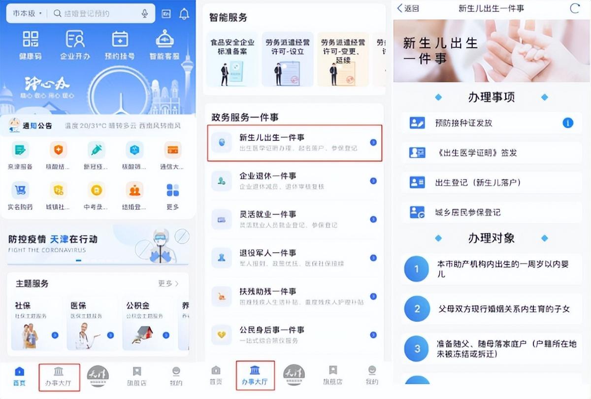 “新生儿出生一件事”前期已在天津市滨海新区塘沽妇产医院和天津市第五中心医院两家医院试点,完成20余笔业务办理。即日起上线“津心办”后,市民体验将会更加方便快捷,让更多新生儿家庭享受到便捷、高效的服务。