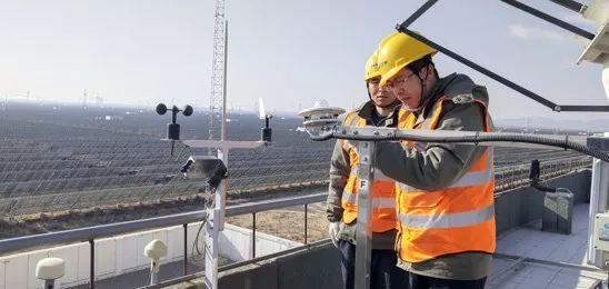元旦期间,远在甘肃,浙江省新能源投资集团股份有限公司西北事业部管控的永昌正泰电站员工正检查光伏天气预测系统,确保新的一年发电预测准确。