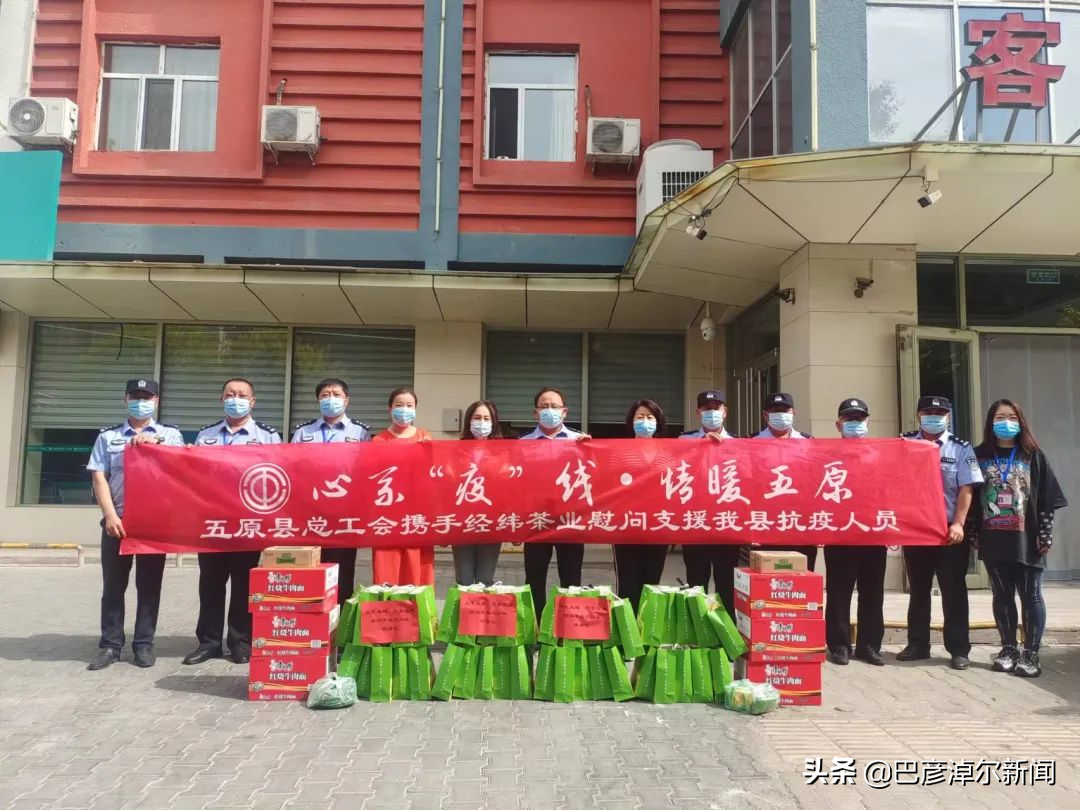 五原县总工会携手经纬茶业慰问前来支援疫情防控工作的外地公安民警和医务工作者,送去消暑茶、方便面和火腿肠等慰问品。
