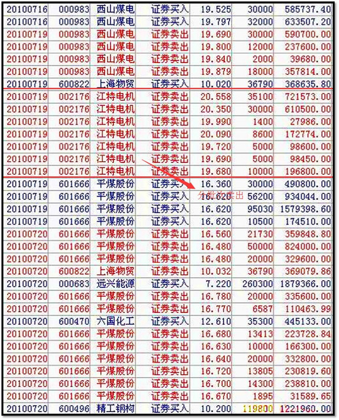 2010/07/19日,在上海物贸上,10.02元买入36万元;在平煤股份上,达300多万元。——两票加起来满仓了