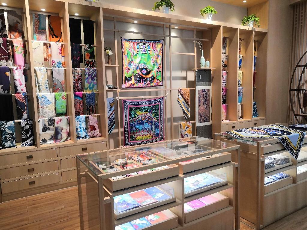 不过,虽然我的人气不低,但在“百花齐放”的众多丝巾中,我也只是一朵含苞待放的花骨朵。因为面料、大小、形状、工艺等不同,我们被分为了300多种款式,价格也从百余元跨越到3000多元。