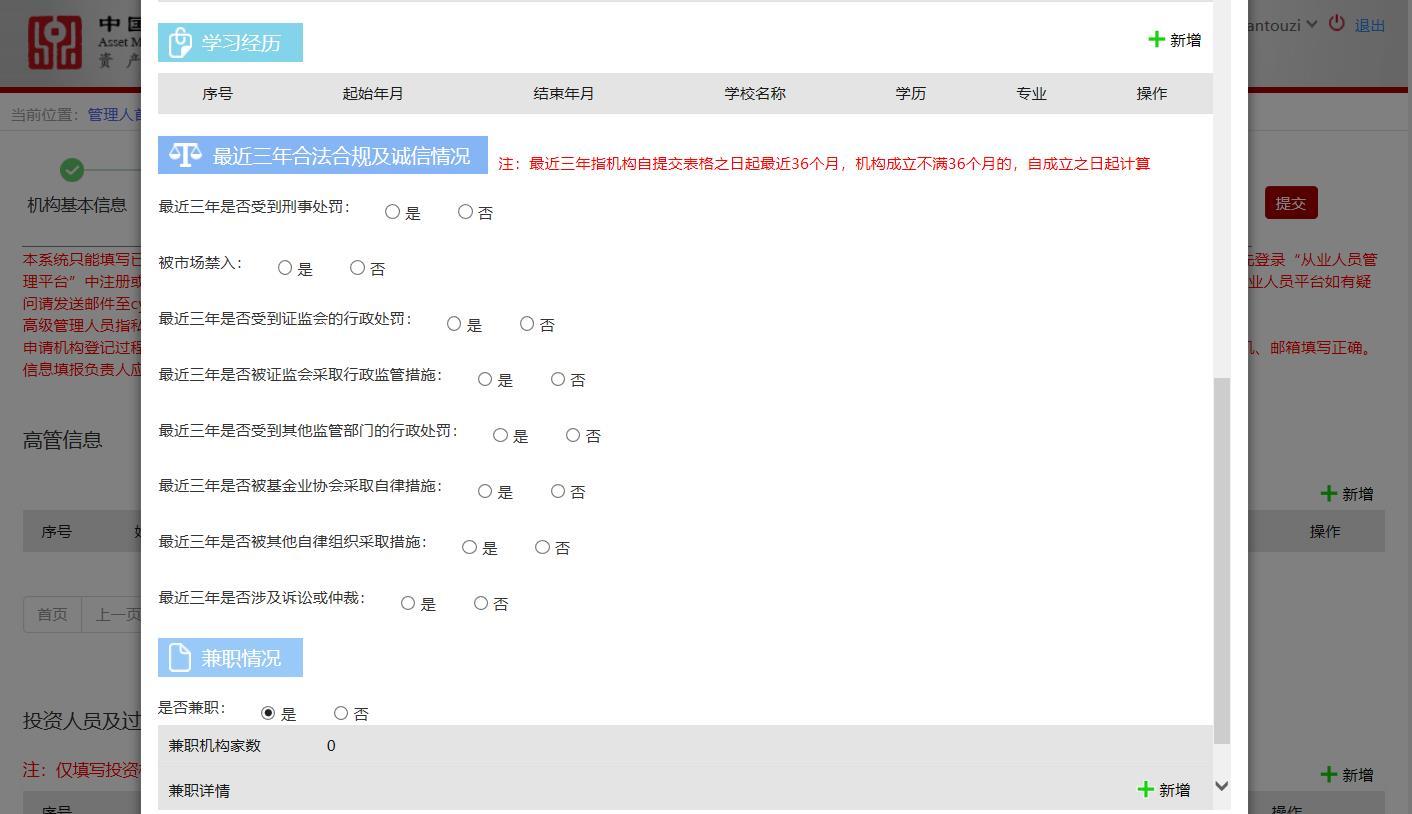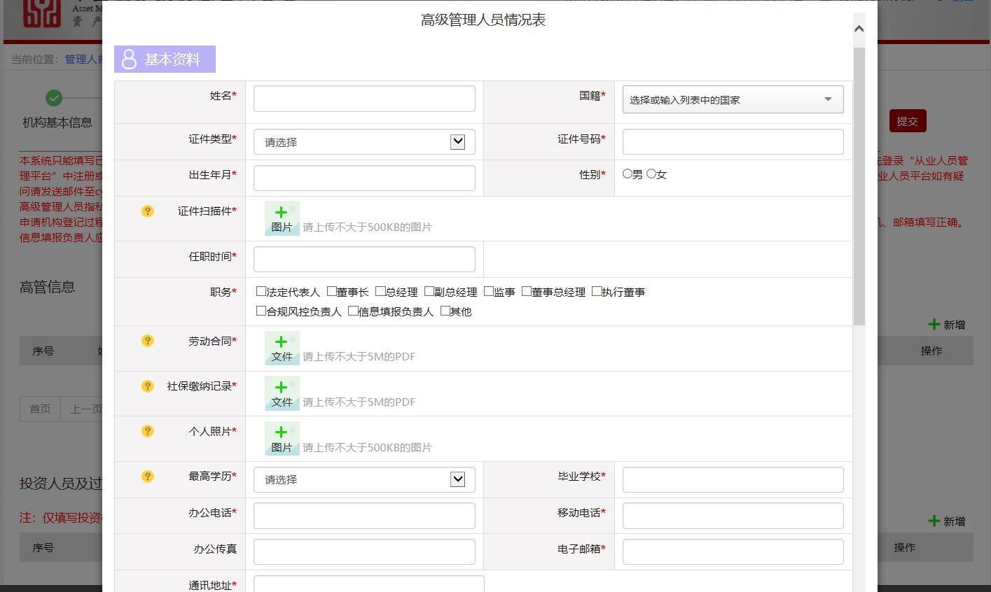 对于拟任职的高管,其需要向登记辅导律师提供更为详尽的尽调材料,其需要在基协资产管理业务综合报送平台(以下简称AMBERS系统)报送更为详尽的登记材料。