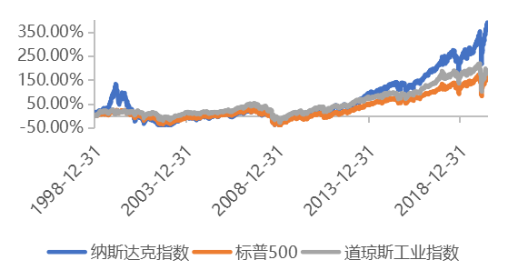 纳斯达克指数长期表现远好于标普500和道琼斯工业指数