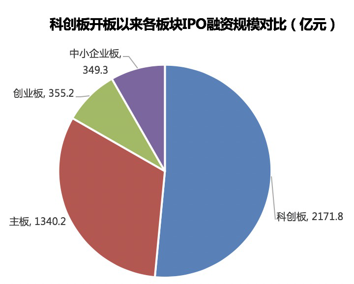 自2019年7月22日开板到2020年7月22日,科创板融资总规模达到2172亿,同期主板、中小企业板、创业板融资规模分别为1340亿、355亿、349亿。业内对此评价,科创板已成为A股市场科技类企业融资的重要市场。(数据来源:华西证券,wind,2020-07-22)