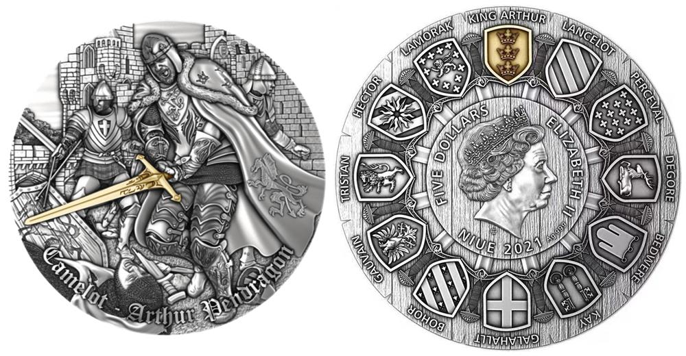 纽埃高浮雕系列新发行的圆桌骑士系列1,亚瑟王,从背面图案推断应该是12枚,而目前这枚是系列第一枚~