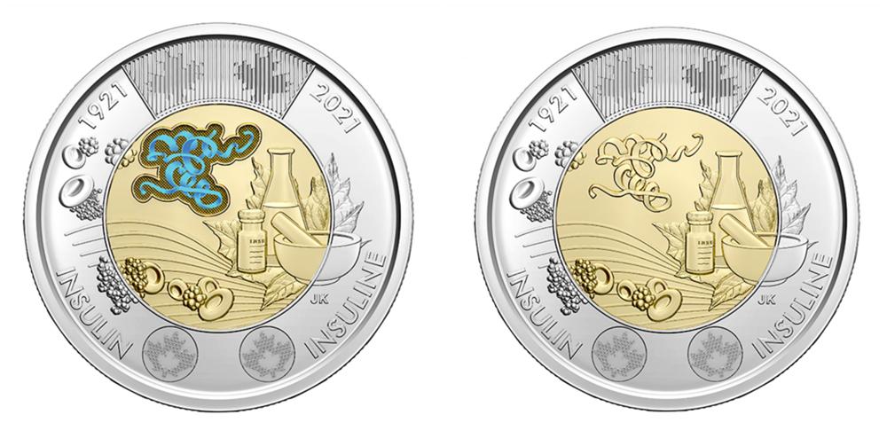胰岛素是由加拿大医生弗雷德里克·格兰特·班廷和查尔思·贝斯特于1921年发现的,胰岛素的发现拯救了全球1600万人的生命,而班廷也是第一个获得诺贝尔奖的加拿大人,2021年是胰岛素发明100周年,由加拿大出这款钱币的实在是再合适不过了,一起来欣赏下~