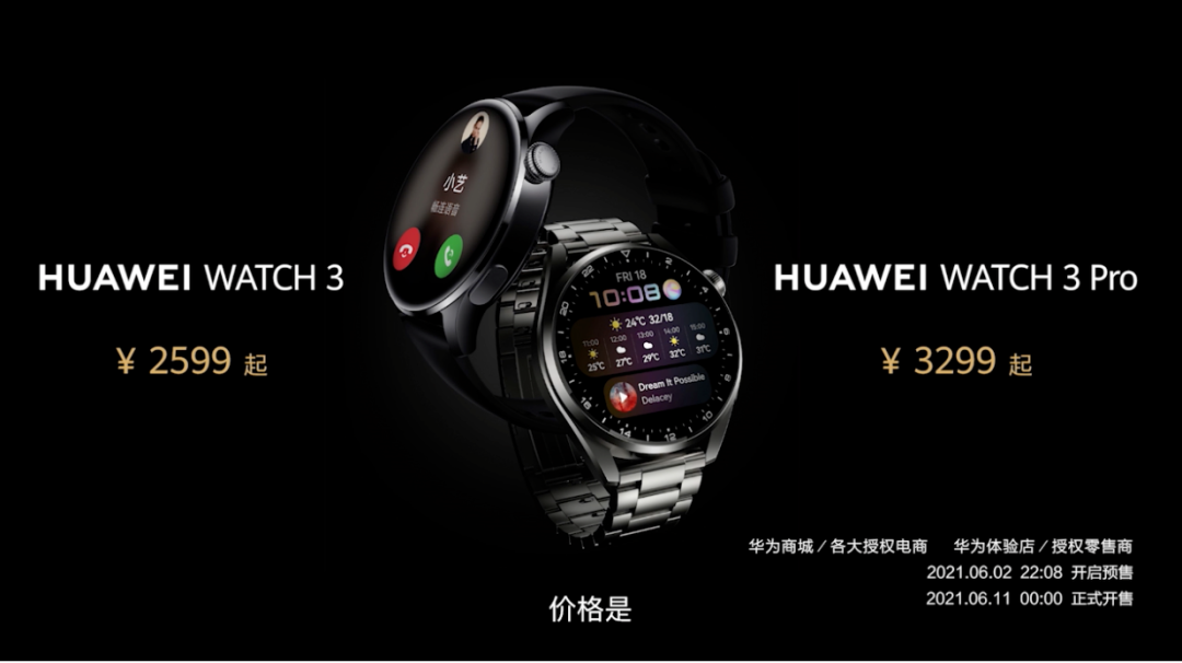 华为WATCH 3售价2599元起,华为WATCH 3 Pro售价3299元
