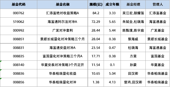 国内代表性的公募对冲基金。