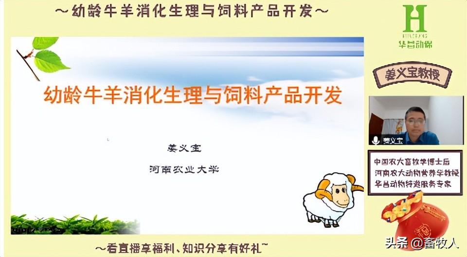 河南农业大学姜义宝教授,在直播间分享了“幼龄牛羊消化生理与饲料产品开发”的主题报告