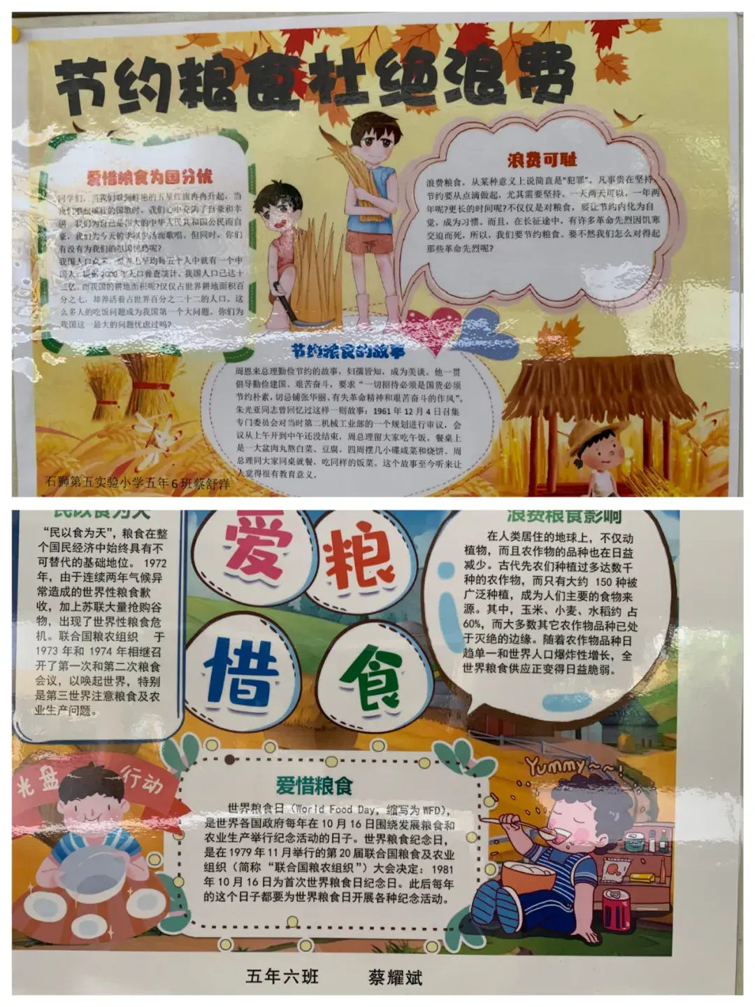 为贯彻落实习近平总书记重要指示精神,推动形成“节约粮食、拒绝浪费”的良好社会风尚,石狮市第五实验小学开展了“珍爱粮食 守护健康 ”系列活动。
