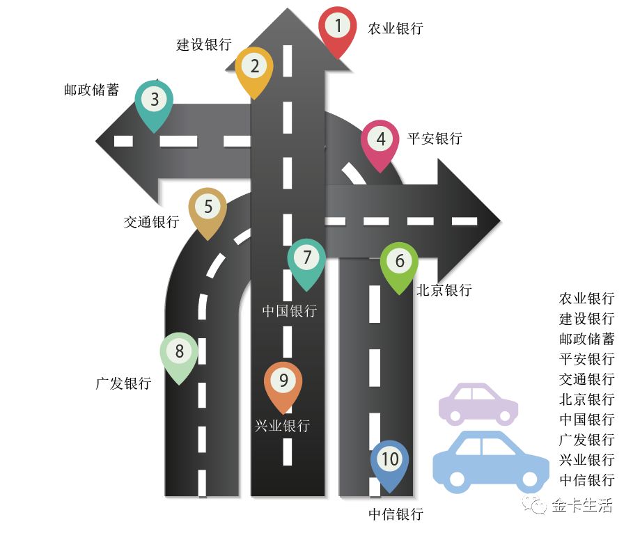 邮政储蓄银行则由2016年的第六名上升到第三名。“自邮一族”联名信用卡是银联标准人民币金卡,产品除了金卡原有的功能、服务外,增加了包括但不限于车辆违章信息查询、代办本地交警罚单、代缴车船税/年票、代办驾驶证和行驶证年审换证业务、代购车辆保险等多项车主服务,是该行推出的一款为广大车主提供全方位汽车管家服务的信用卡。另外,邮政储蓄银行也有各类ETC联名卡,为持卡人提供一卡双功能、先通行后扣款、高速通行费95折等服务。在营销活动方面,则跨领域合作推出“邮储银联信用卡悦享滴滴打车随机减”“邮储银联信用卡悦享首汽约车充500得800”“刷邮储银联信用卡,使用ApplePay或银联在线支付首汽约车充300送120”等活动,持卡人享受到了多元丰富的实惠,成为车主持卡人频繁使用的主要原因。