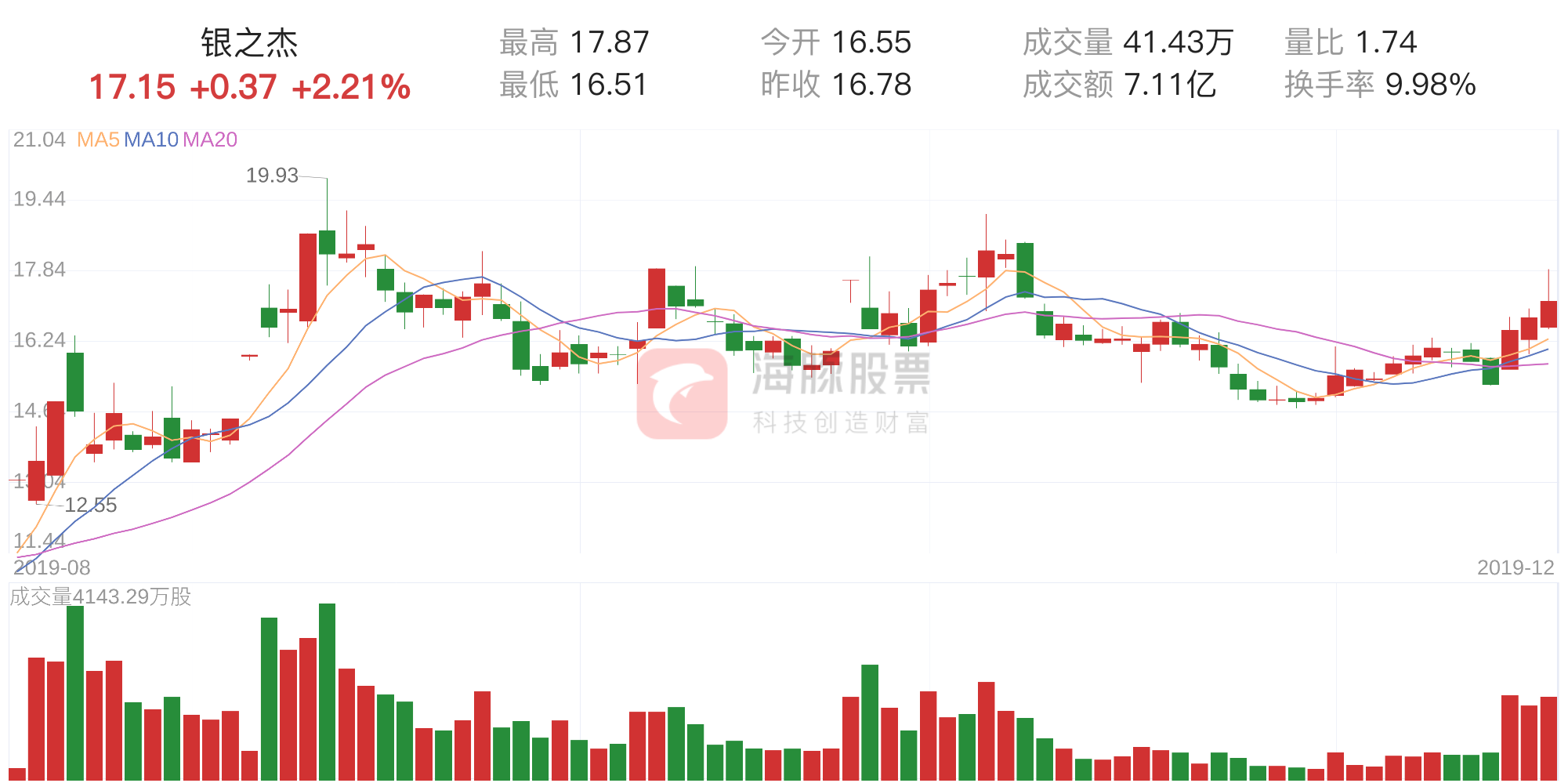 根据海豚股票数据统计显示,截至收盘,银之杰股价报17.15元,涨跌幅为2.21%,换手率为9.98%,全天成交7.11亿元。