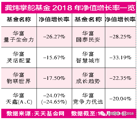 在此次华富元鑫清盘前,华富副总龚炜管理的基金总共有9只,另外八只分别是:华富量子生命力、华富灵活配置、华富物联世界、华富天鑫、华富国泰民安、华富智慧城市、华富成长趋势、华富竞争力优选。但从这八只目前尚存续运作的产品来看,开年迄今的净值跌幅均超过15%,其中5只跌幅甚至超过20%。