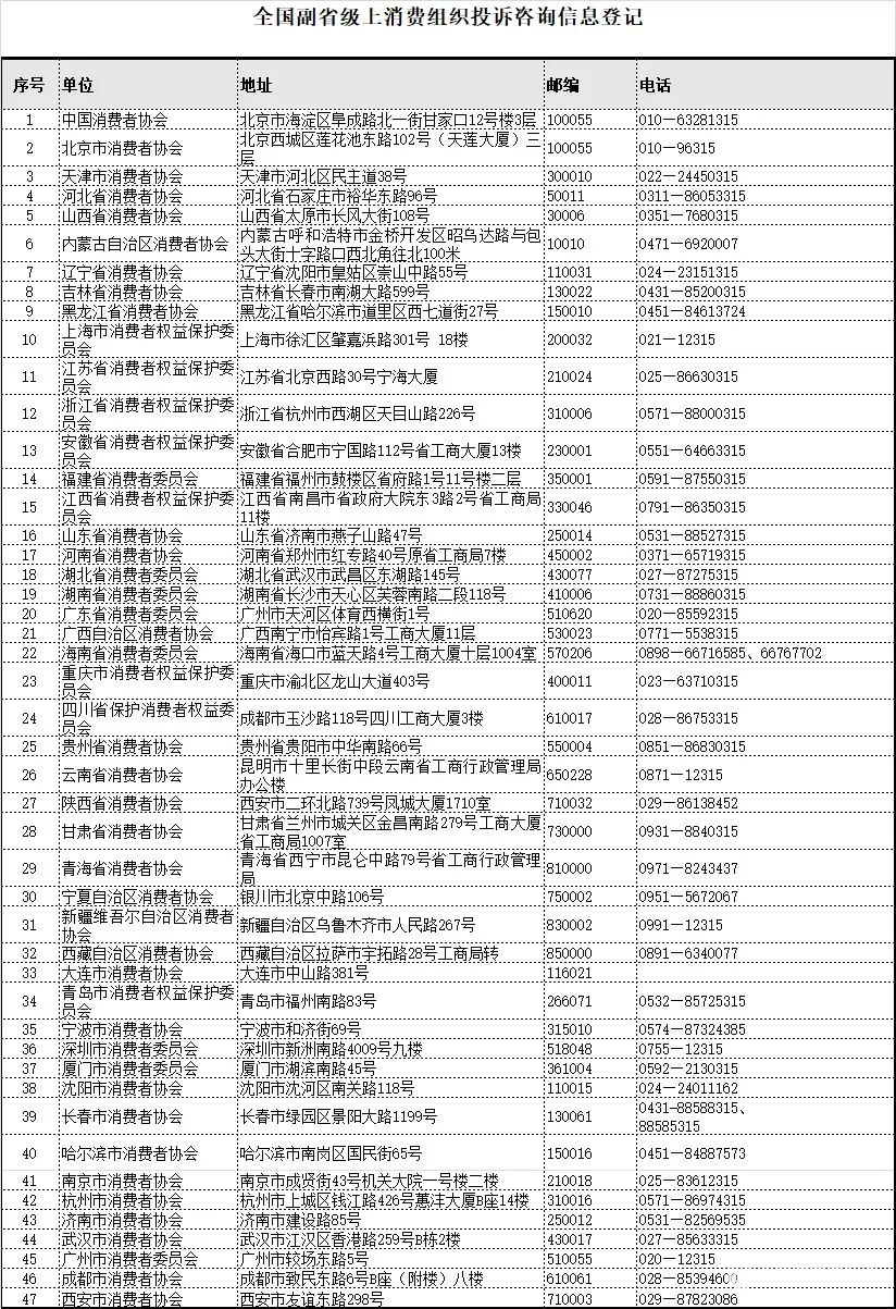 消费者投诉电话:12315