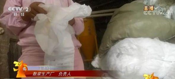 等生产成人纸尿裤的工厂,以发霉、废弃的"散浆“替代"卷浆"原料生产纸尿裤等卫生用品。